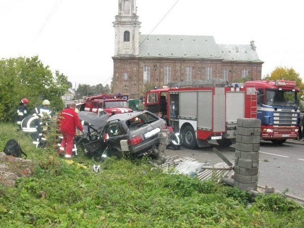 Patikslinus aplinkybes, paaiškėjo, kad tai tas pats automobilis „Audi B4″. Vairuotojas posūkyje nesuvaldė transporto priemonės, nuvažiavo nuo kelio ir atsitrenkė į mūrinę tvorą. Eismo įvykio metu sužeisti visi keturi automobiliu važiavę jaunuoliai, du iš jų, vairuotojas D. T. (gimęs 1992 m.) ir vienas iš keleivių A. G. (gimęs 1989 m.), sunkiai bei gydomi reanimacijoje.