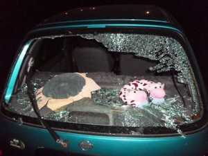 Šeštadienį paryčiais Taikos pr. pastebėti du jaunuoliai. Vienas iš jų ranka trenkė į automobilio galini stiklą, stiklas sudužo. Abu jaunuoliai bėgo Taikos pr. 30 namo link. Įtariamieji buvo sulaikyti. Sulaikius jaunuolius, buvo gautas pranešimas, kad du jaunuoliai neseniai daužė Taikos pr. 37 name esančios parduotuvės palanges. Išaiškėjo, kad tai yra tie patys vaikinai. Dėl šių įvykių sulaikyti 1986 m. gimęs G. G. bei 1987 m. gimęs K. R.